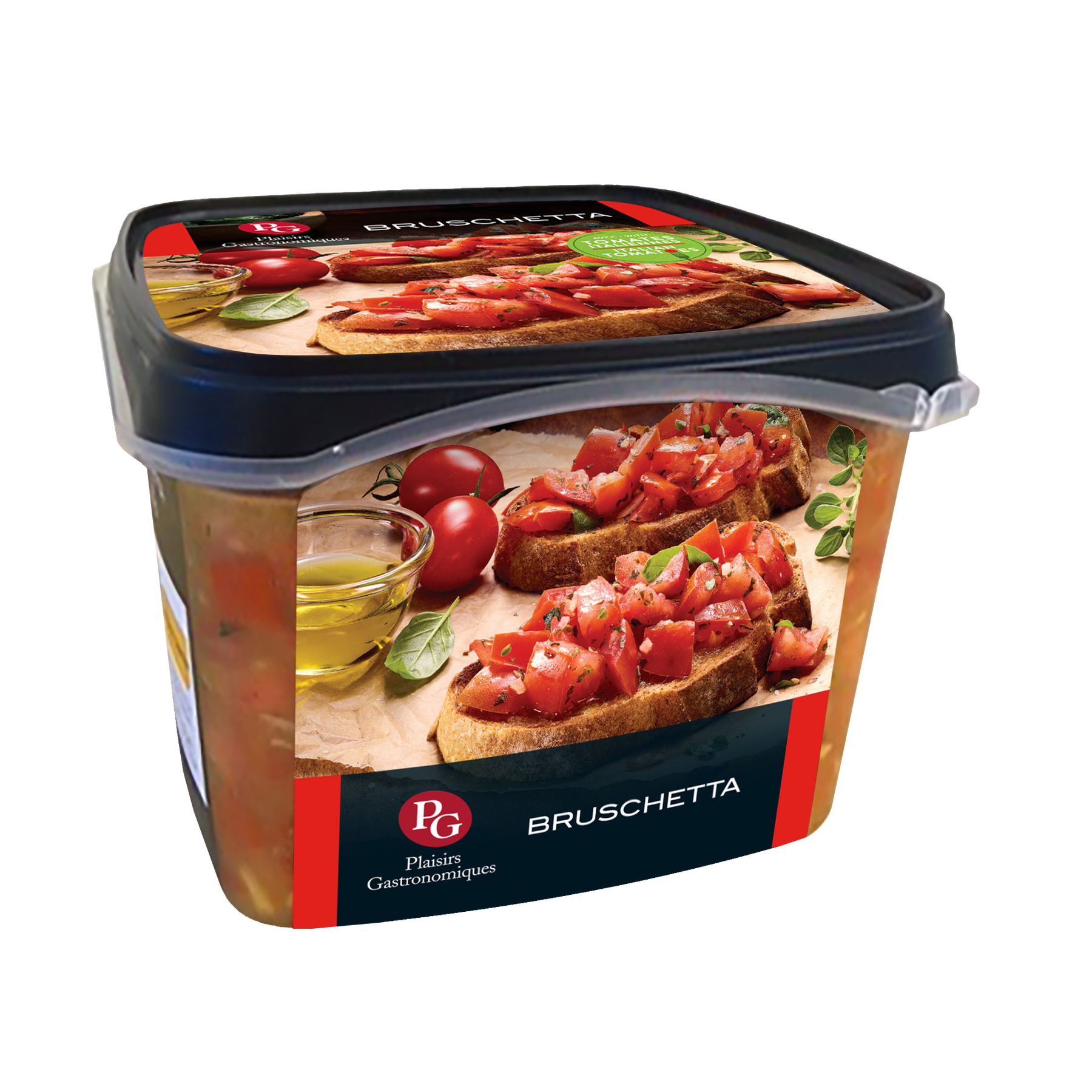 Our bruschetta is full of authentic Italian flavors: ripe Roma tomatoes enhanced with garlic, olive oil, and a bouquet of fresh herbs including basil and oregano. Perfect for any occasion!